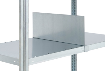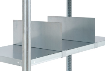 Fully adjustable side compartment dividers for shelves in the professional and basic plug-in racks